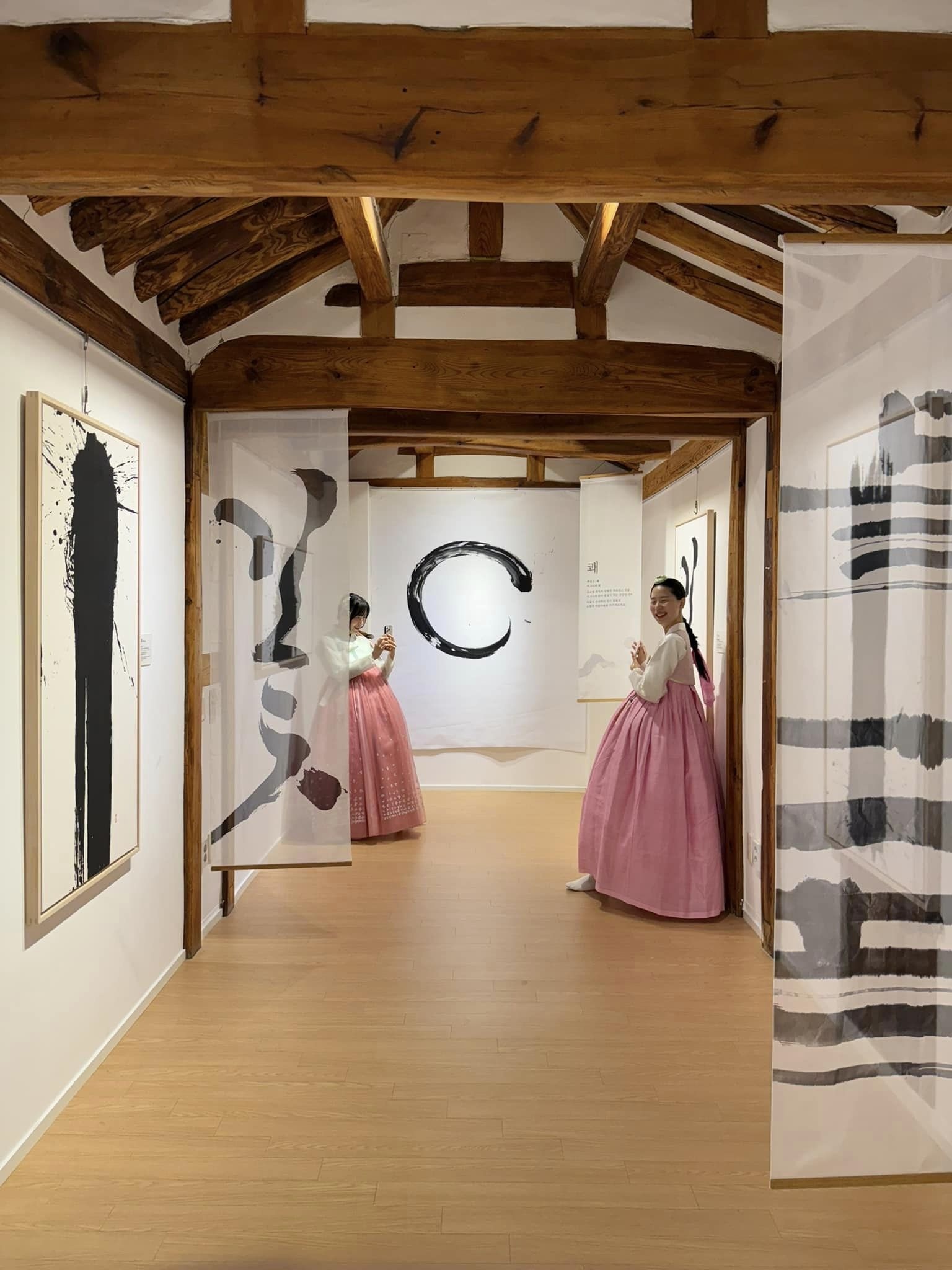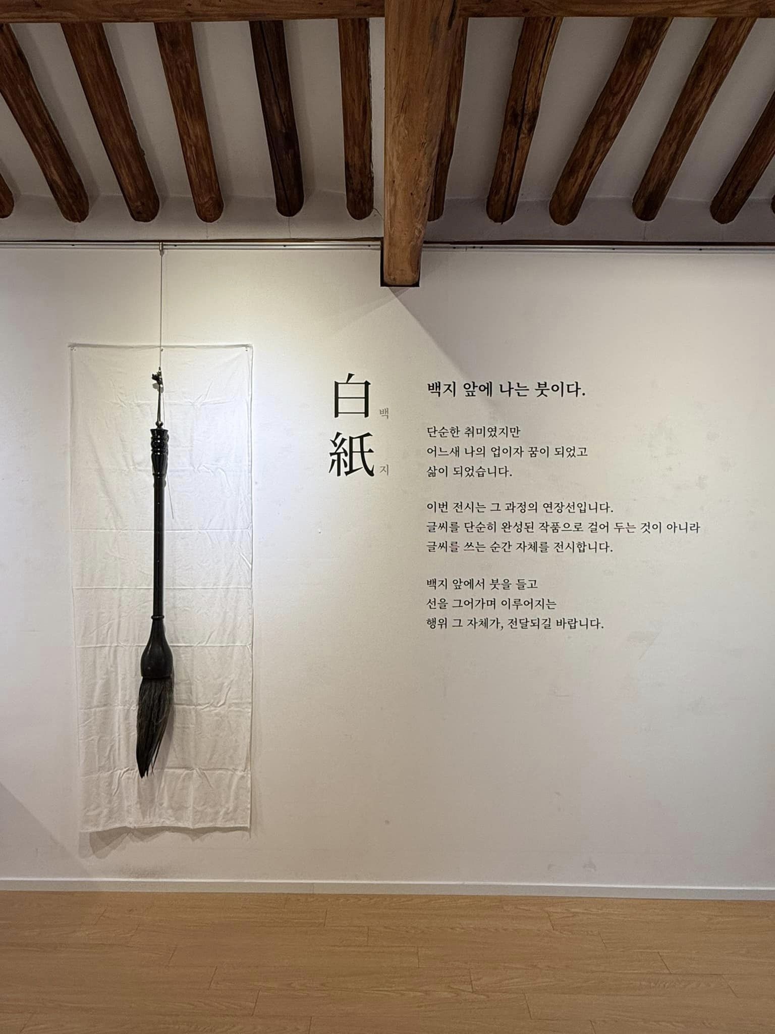 이번 전시는 그 과정의 연장선. 글씨를 단순히 완성된 작품으로 걸어 두는 것이 아니라 글씨를 쓰는 순간 자체를 전시하고자 했다.